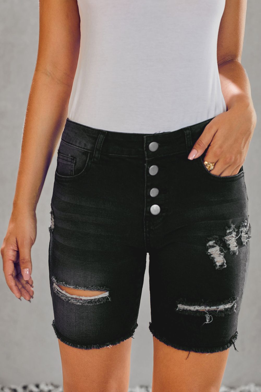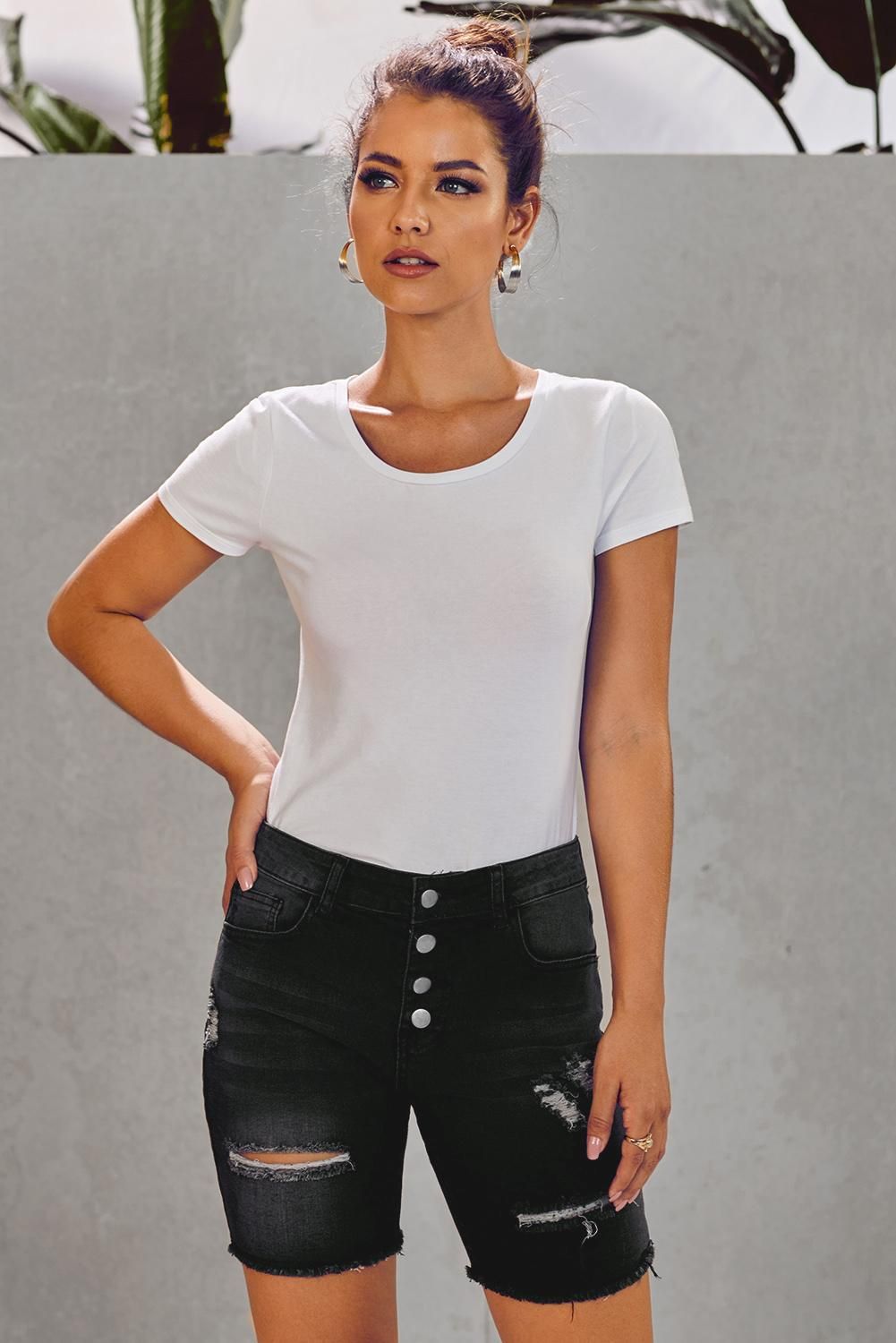 Distressed front and raw hemline loved by modern ladies