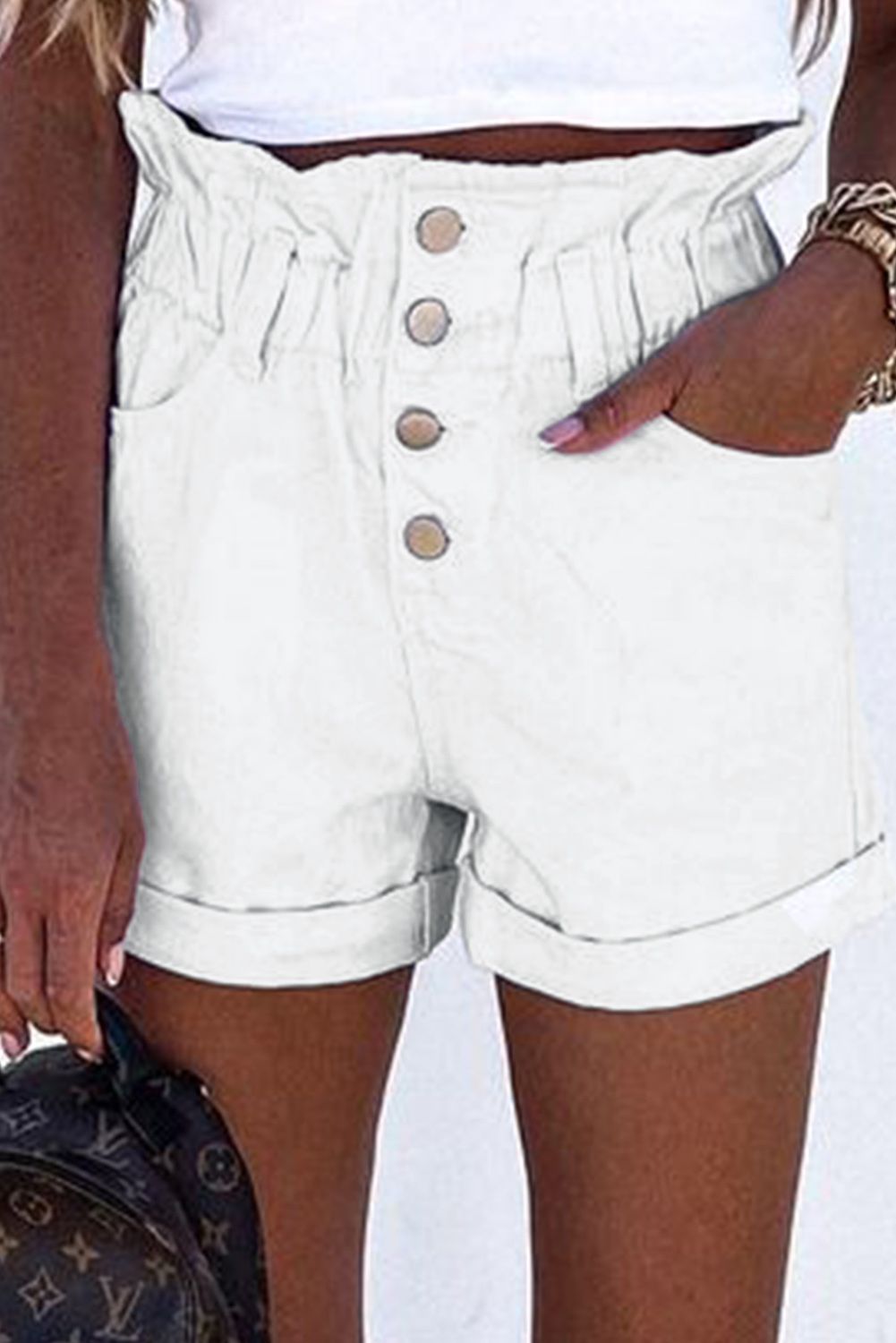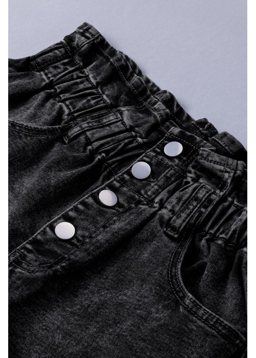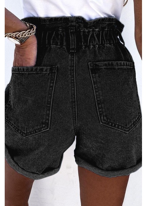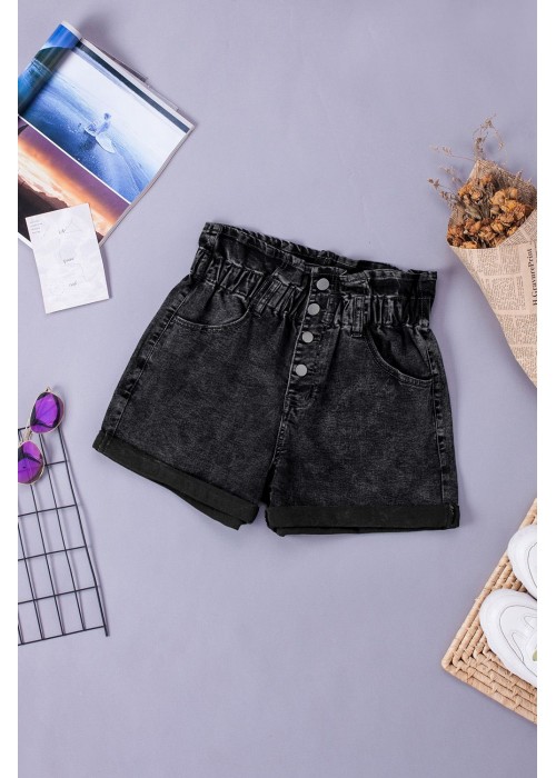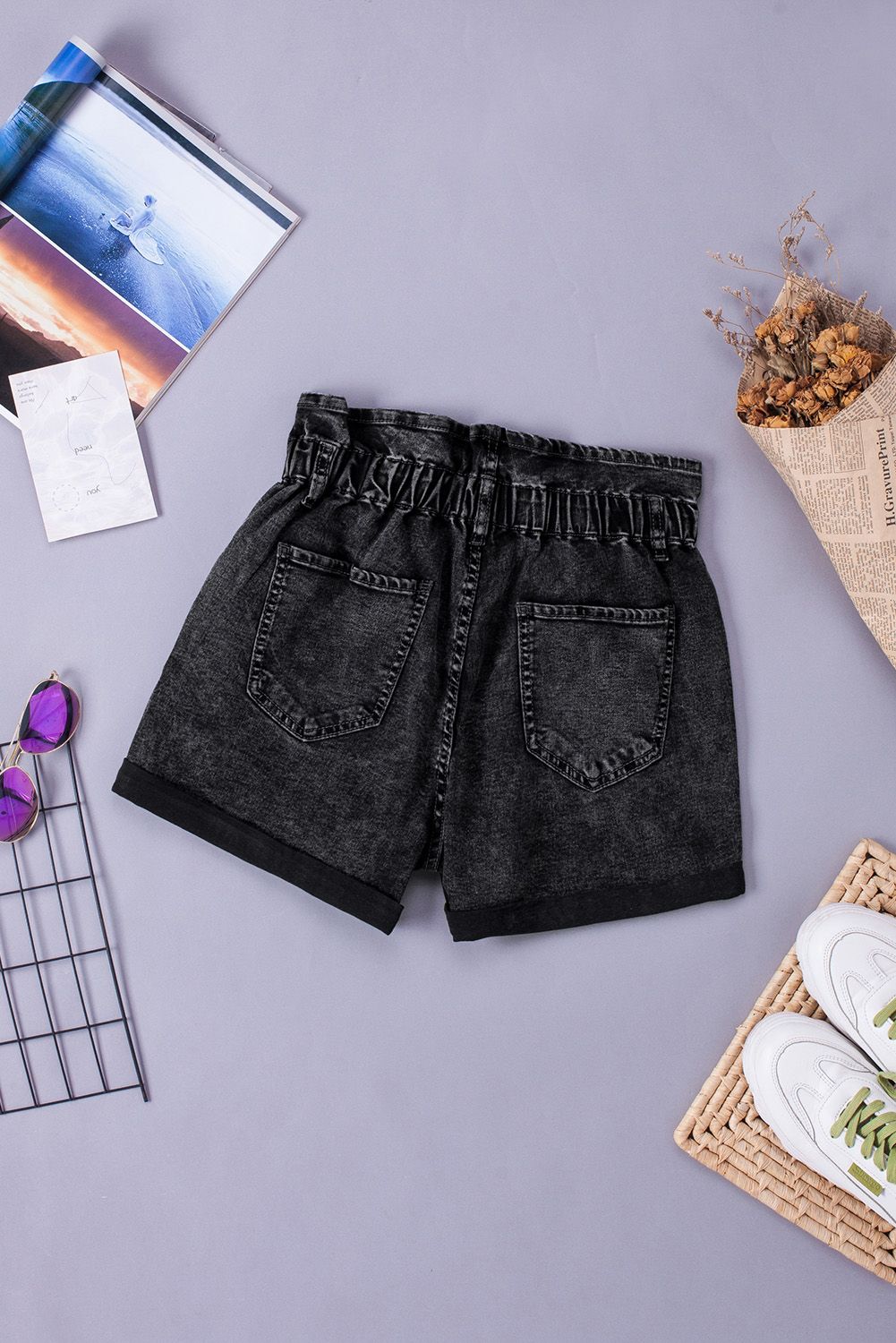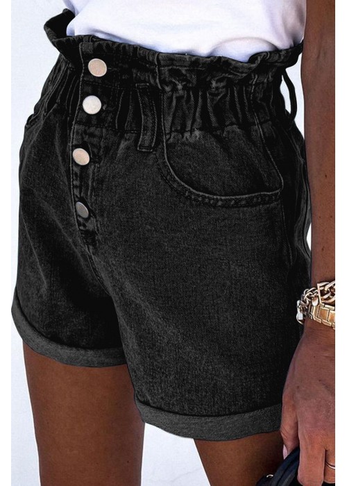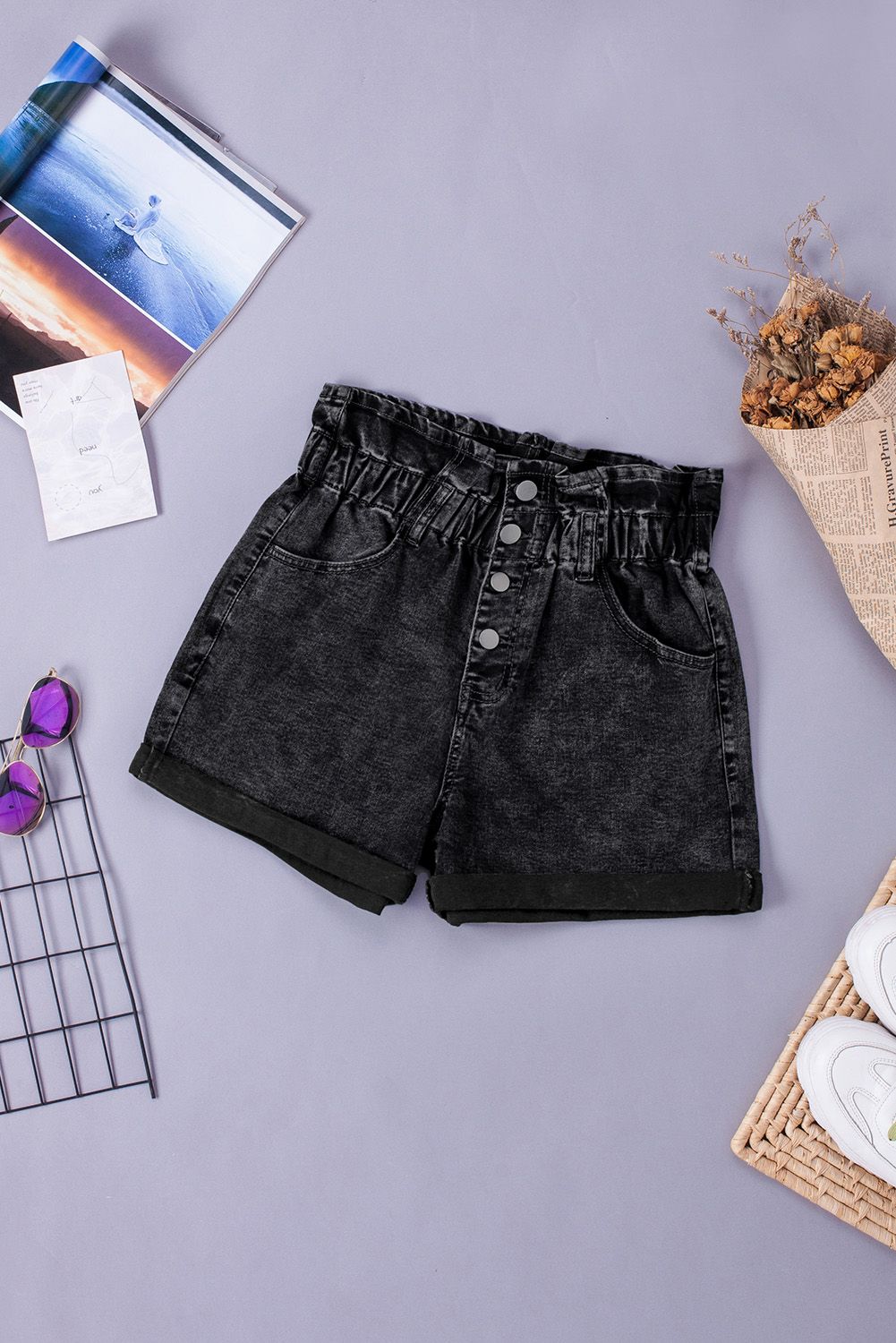 A womens denim shorts with high waist pocket It features a four buttons closure front, ruffled waistline and pockets The relaxed fit style is comfy and will make the wearer look slim Wide leg with folded hem design makes the leg longer and sexier womens denim shorts wholesale for ladies and young girls