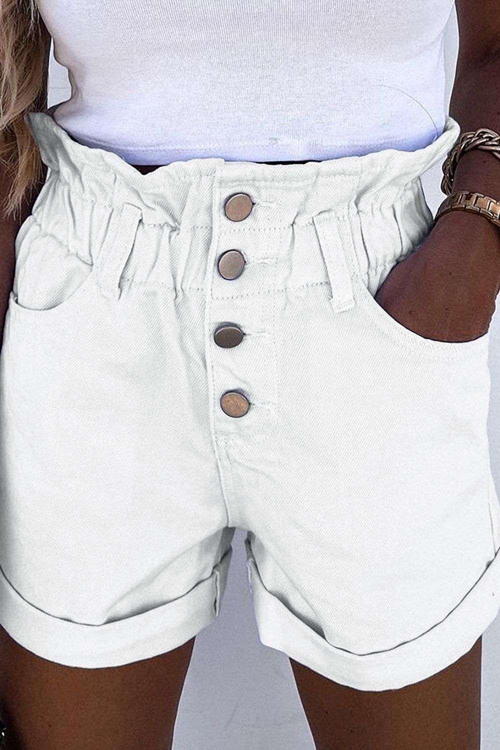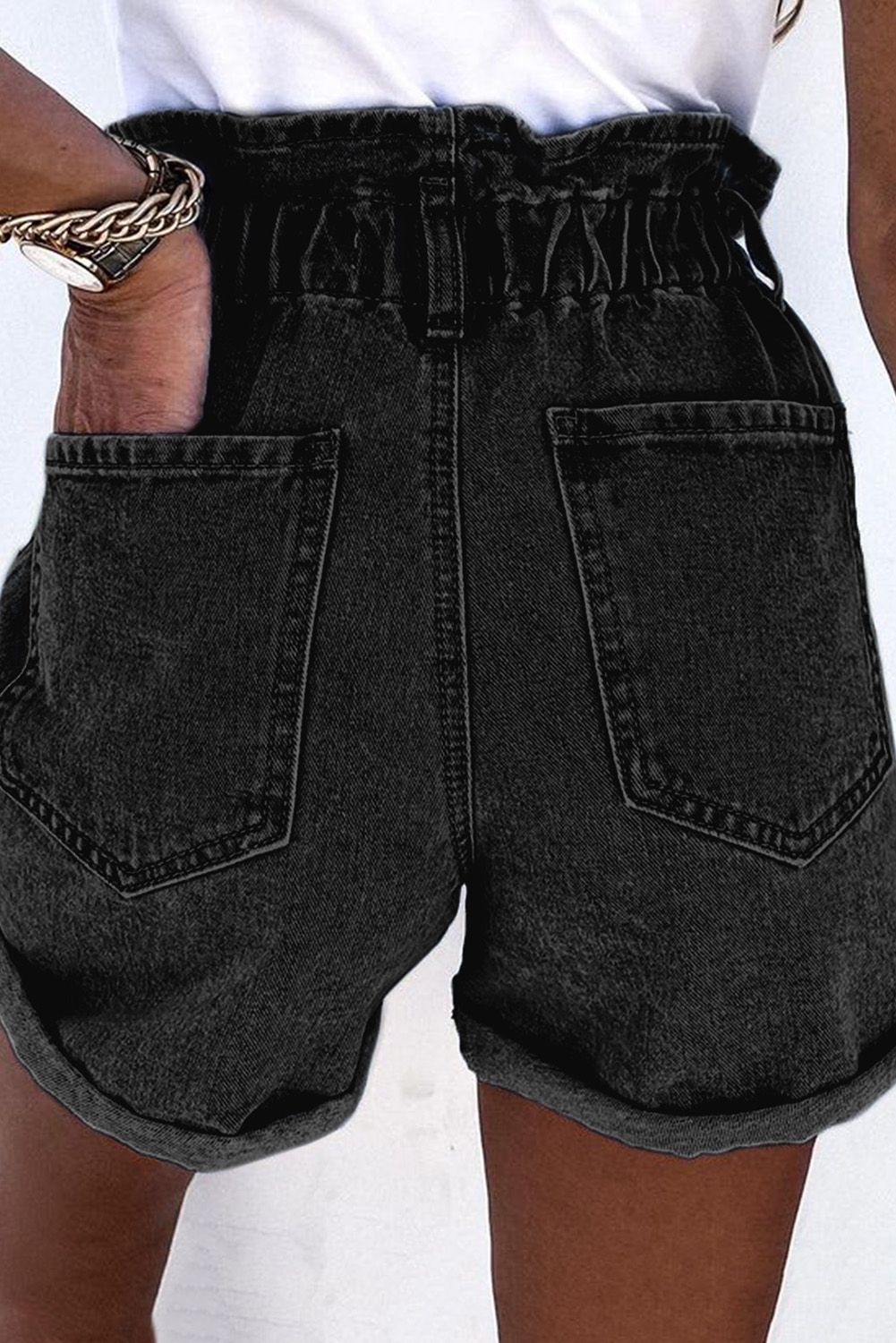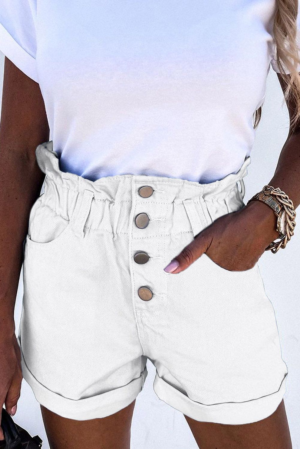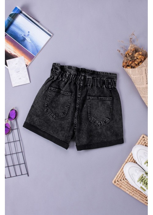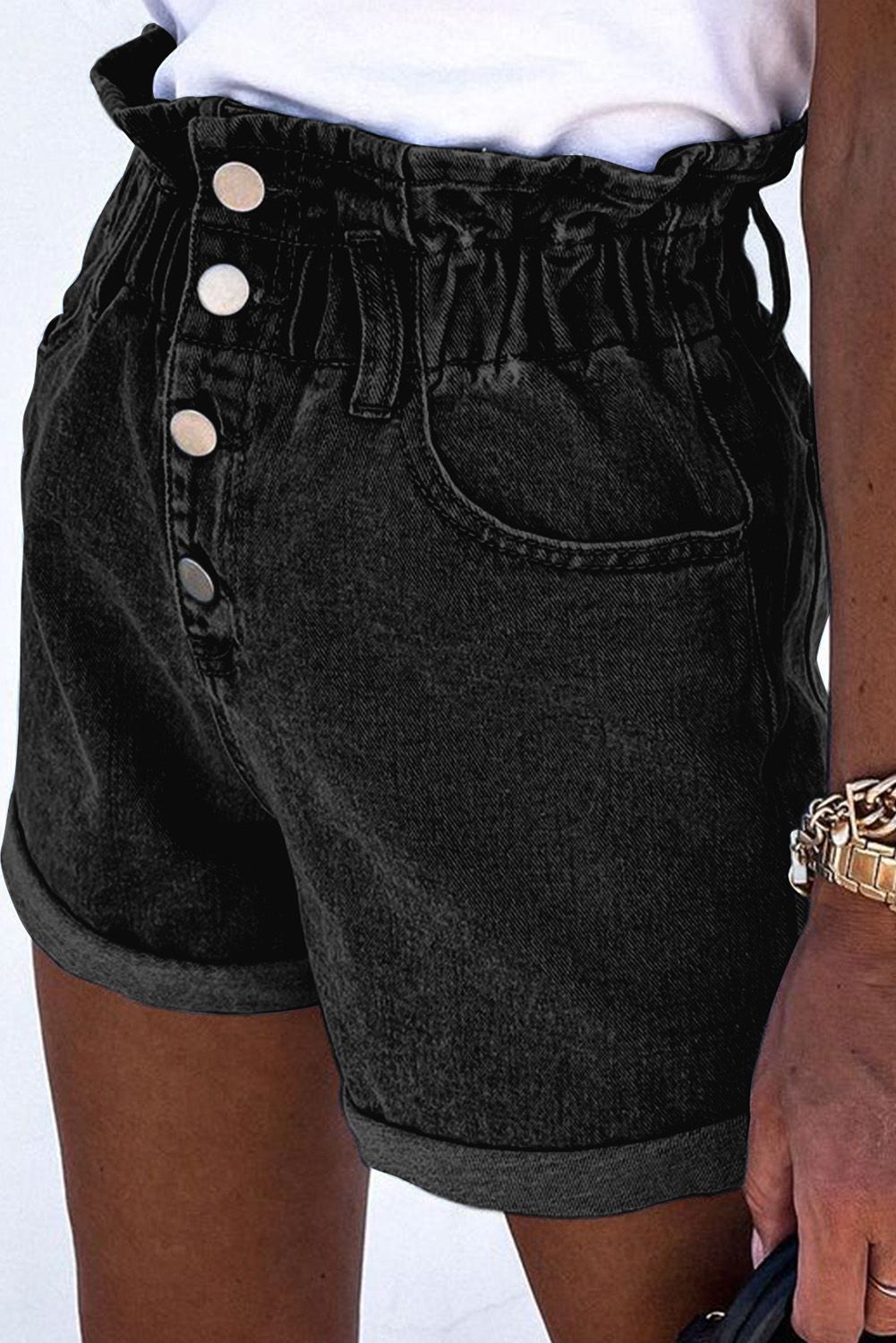 A womens denim shorts with high waist pocket It features a four buttons closure front, ruffled waistline and pockets The relaxed fit style is comfy and will make the wearer look slim Wide leg with folded hem design makes the leg longer and sexier womens denim shorts wholesale for ladies and young girls