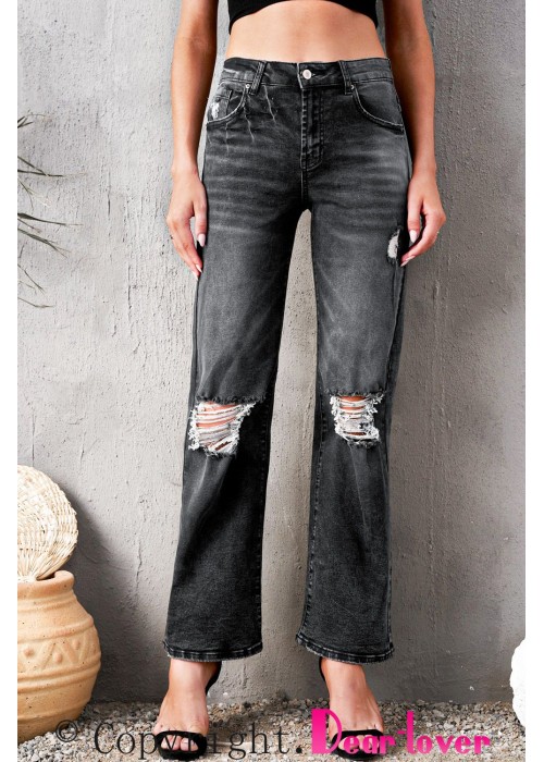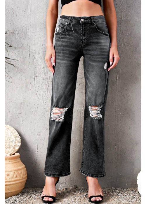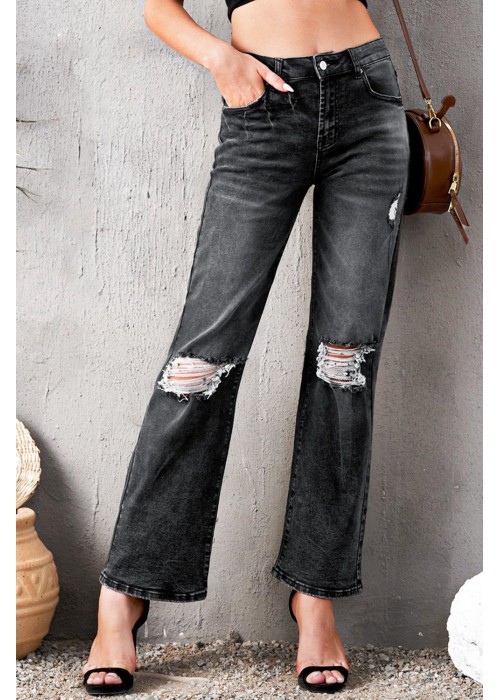 These wash denim jeans come with wide-leg design that features ripped holes
