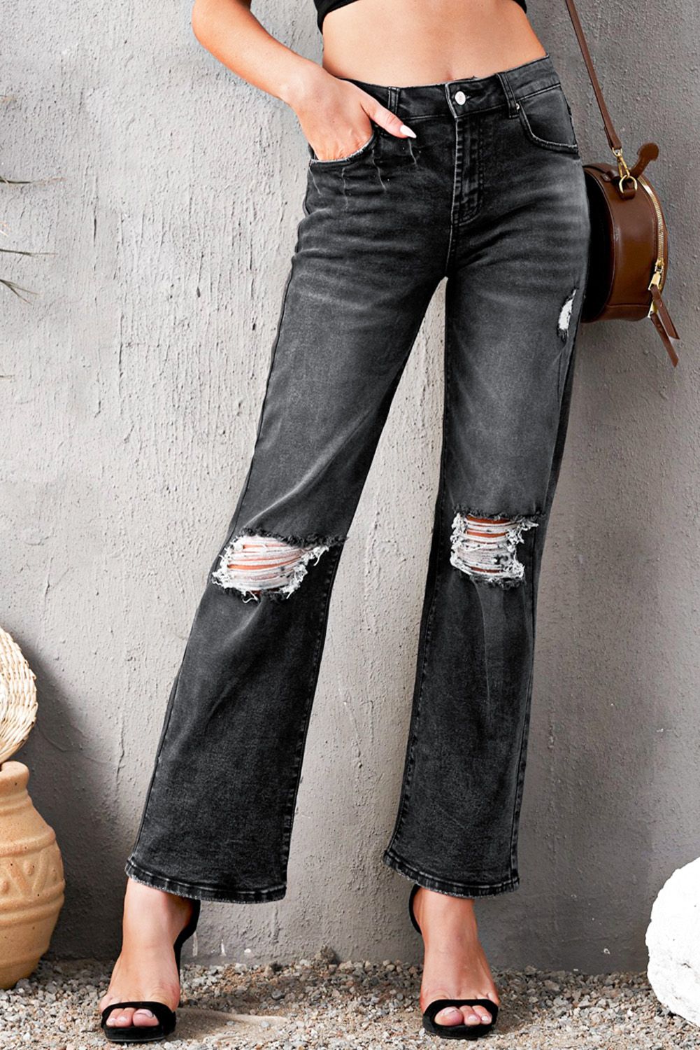 We are obsessing over the 90's vibes of our High Waist Distressed Ripped Hole Flare Jeans