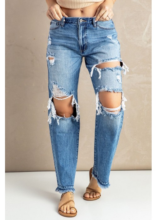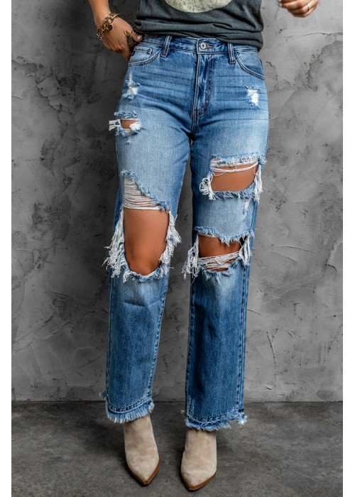 - These distressed jeans with daring holes hollow-out are retro and fashion-forward
