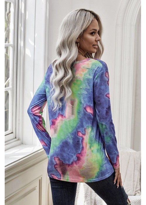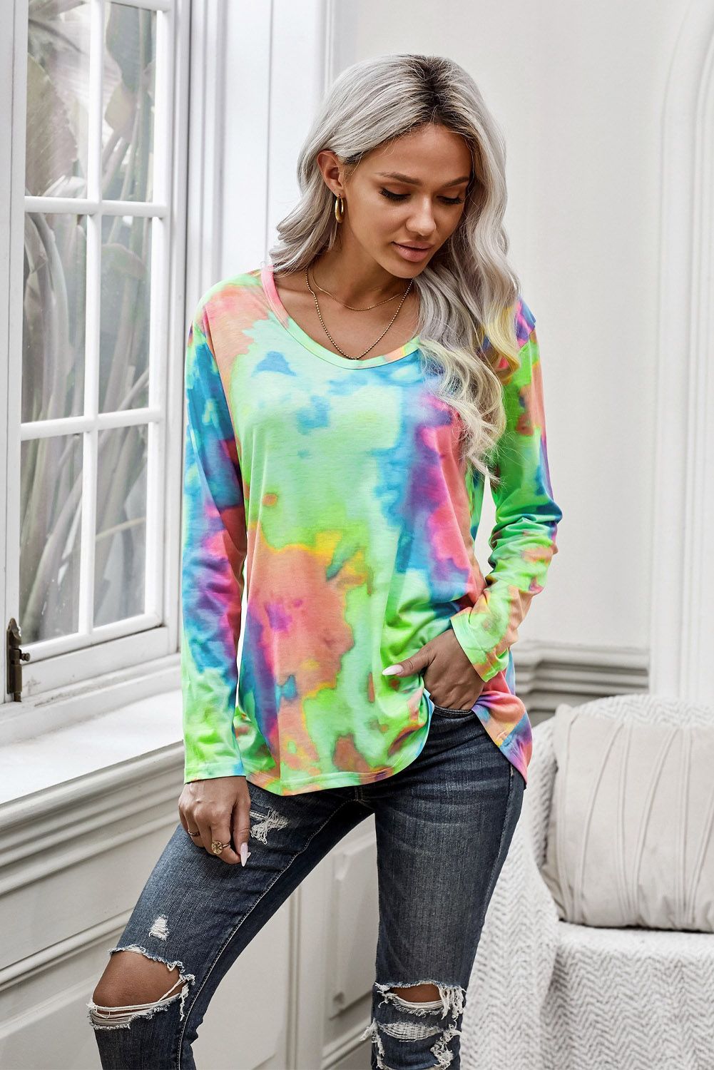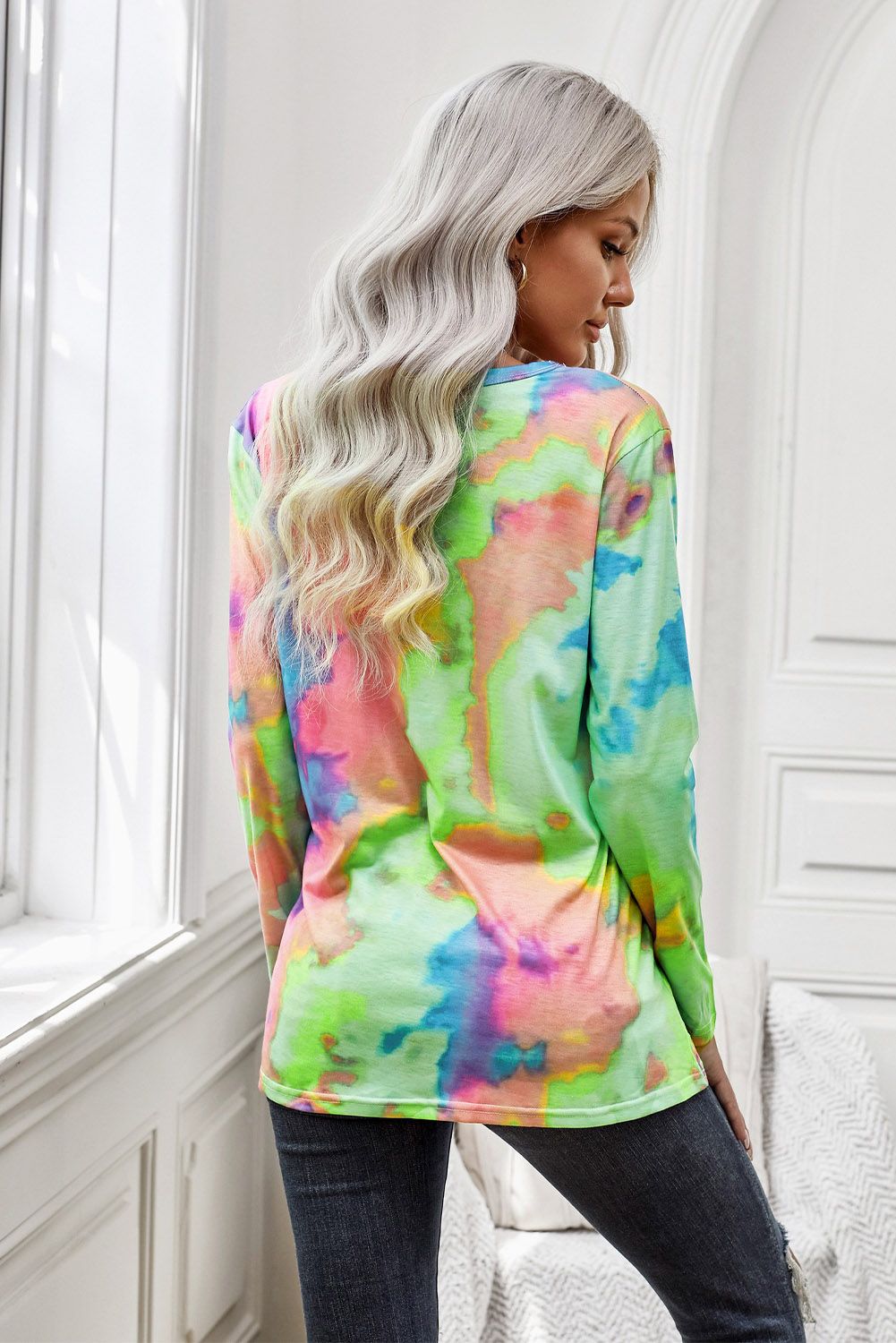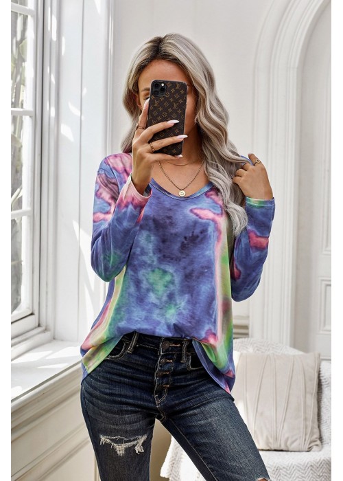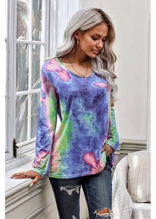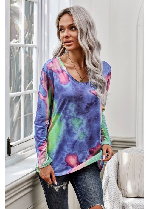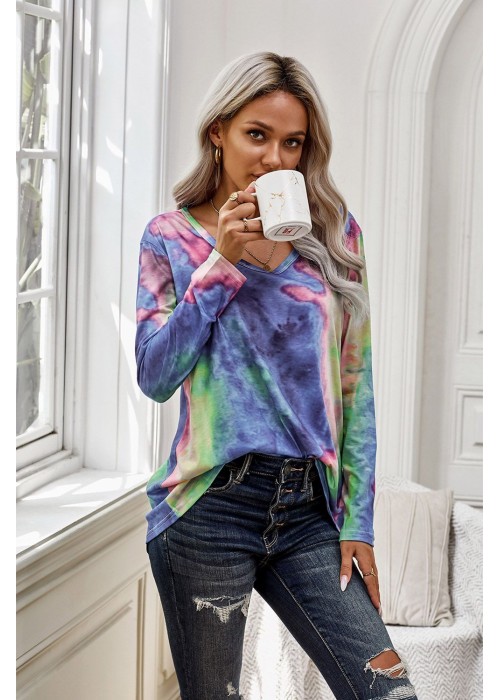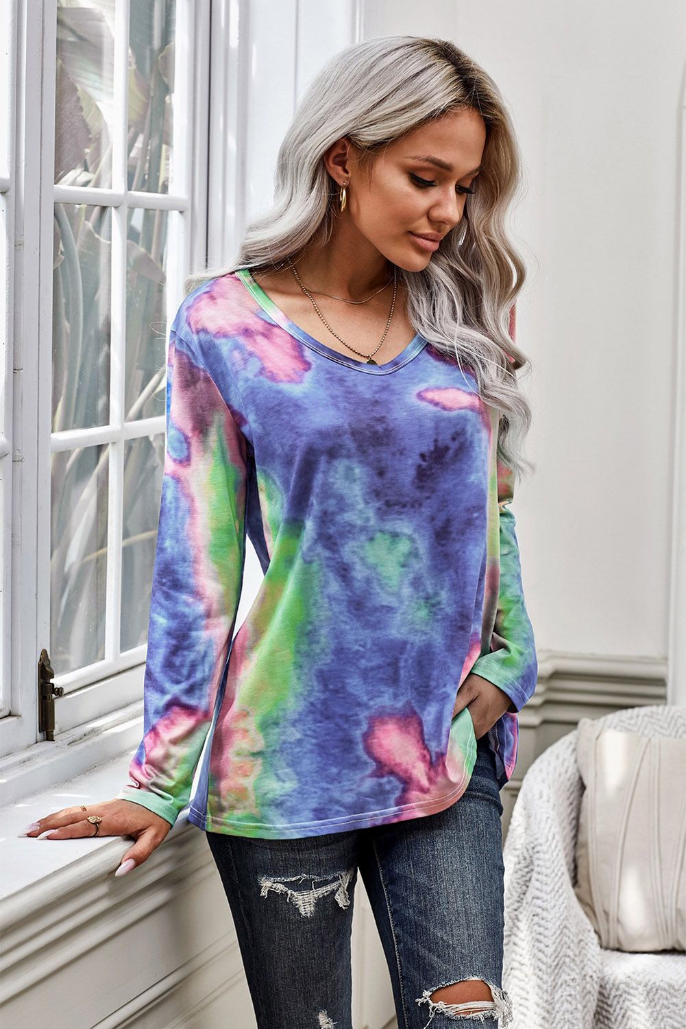 Classic v neck, long sleeves Catch the trend by this tie dye top Loose fit silhouette is comfy and casual Easy to match with any casual pants Catch up the latest fashion trend by long sleeve tops