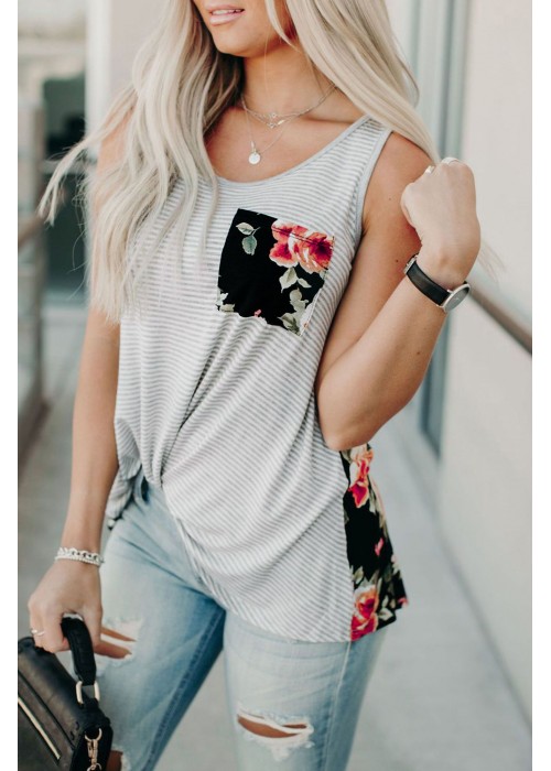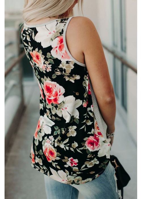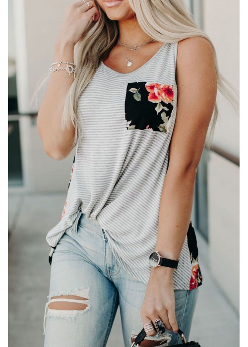 Camo/stripe & floral mixed printtank top