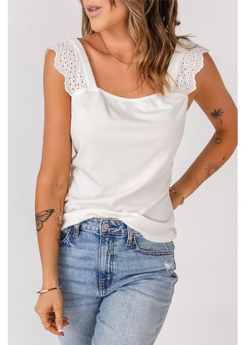 - Eyelet ruffled detail on the shoulder is unique and graceful