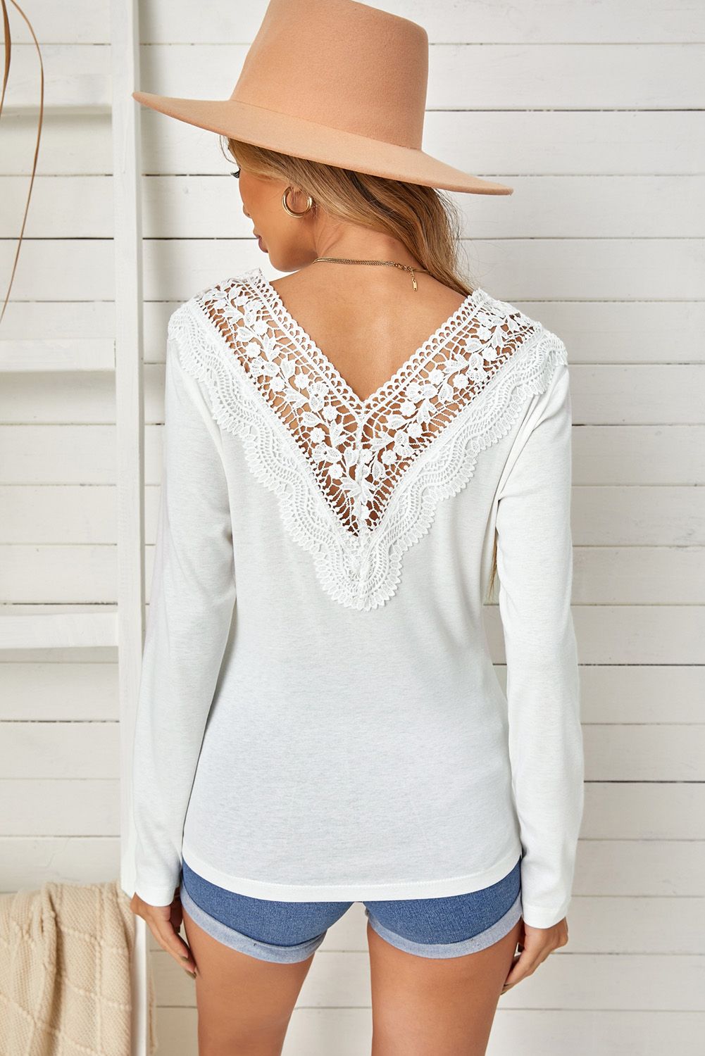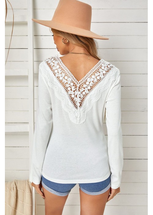 Solid color in white, this long sleeve top is innocent and graceful for modern ladies